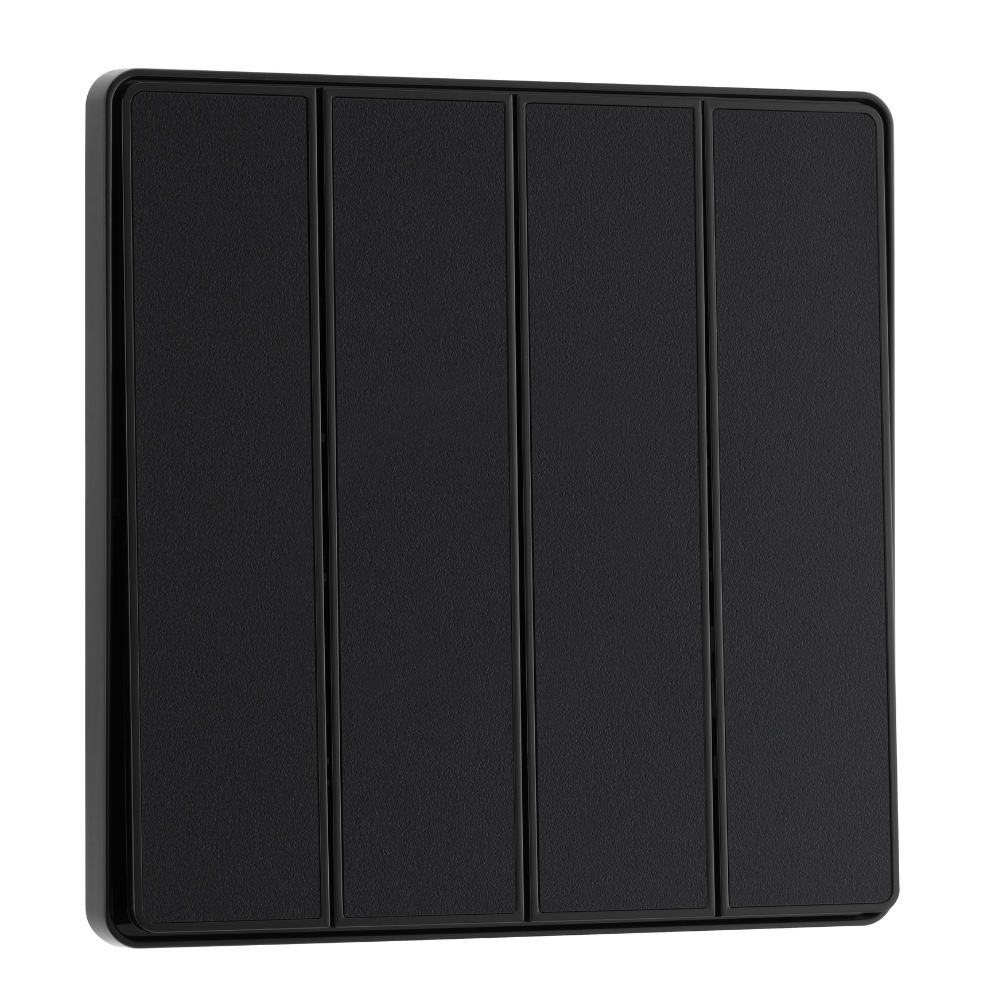 British General Evolve Matt Black Edge to Edge, 4 Gang, 2 Way Switch, 20 Amp (PCDMB44EB)
