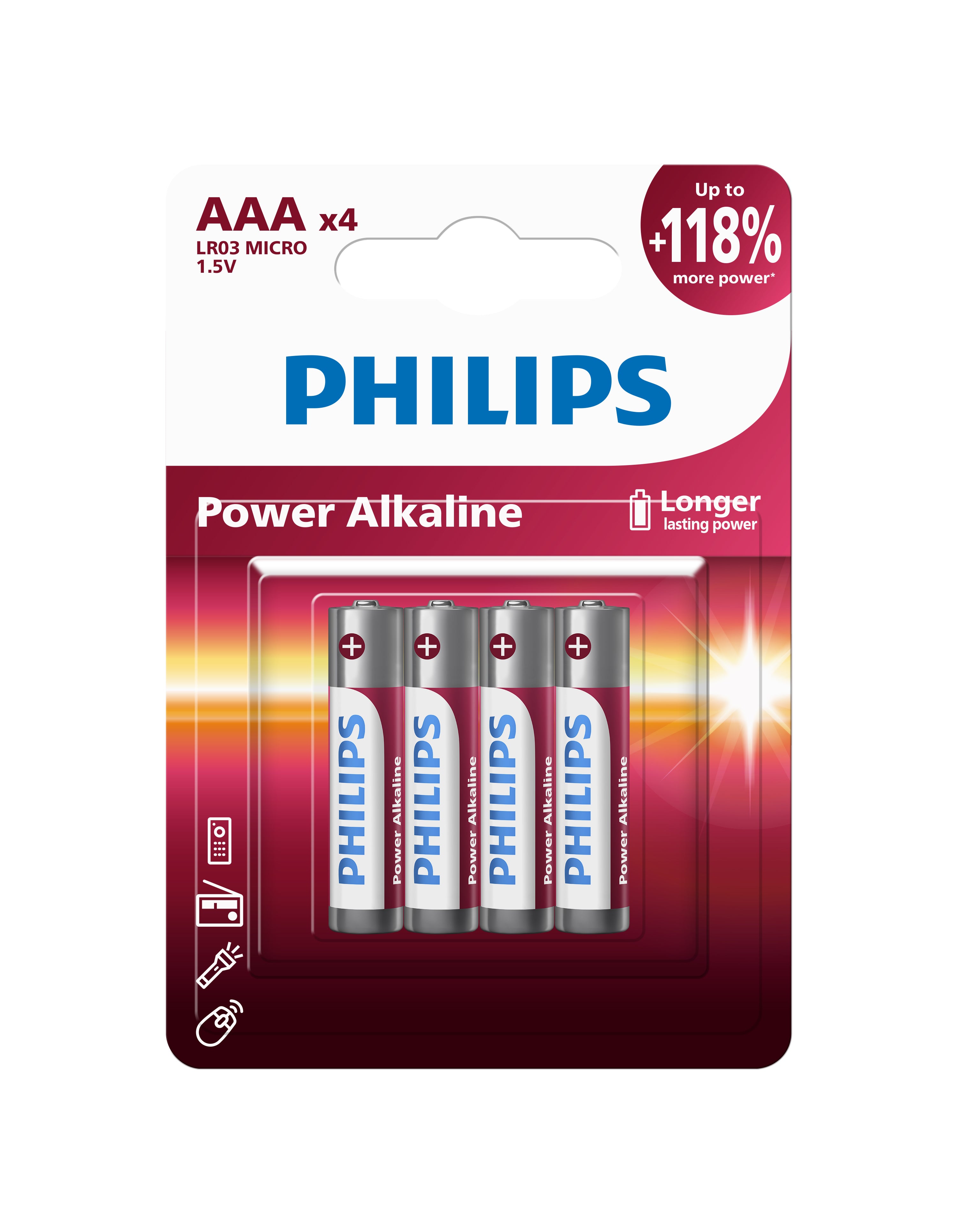 Philips 4AAA Power Alkaline Battery Bundle 5 Packs (LR03P4B/40)