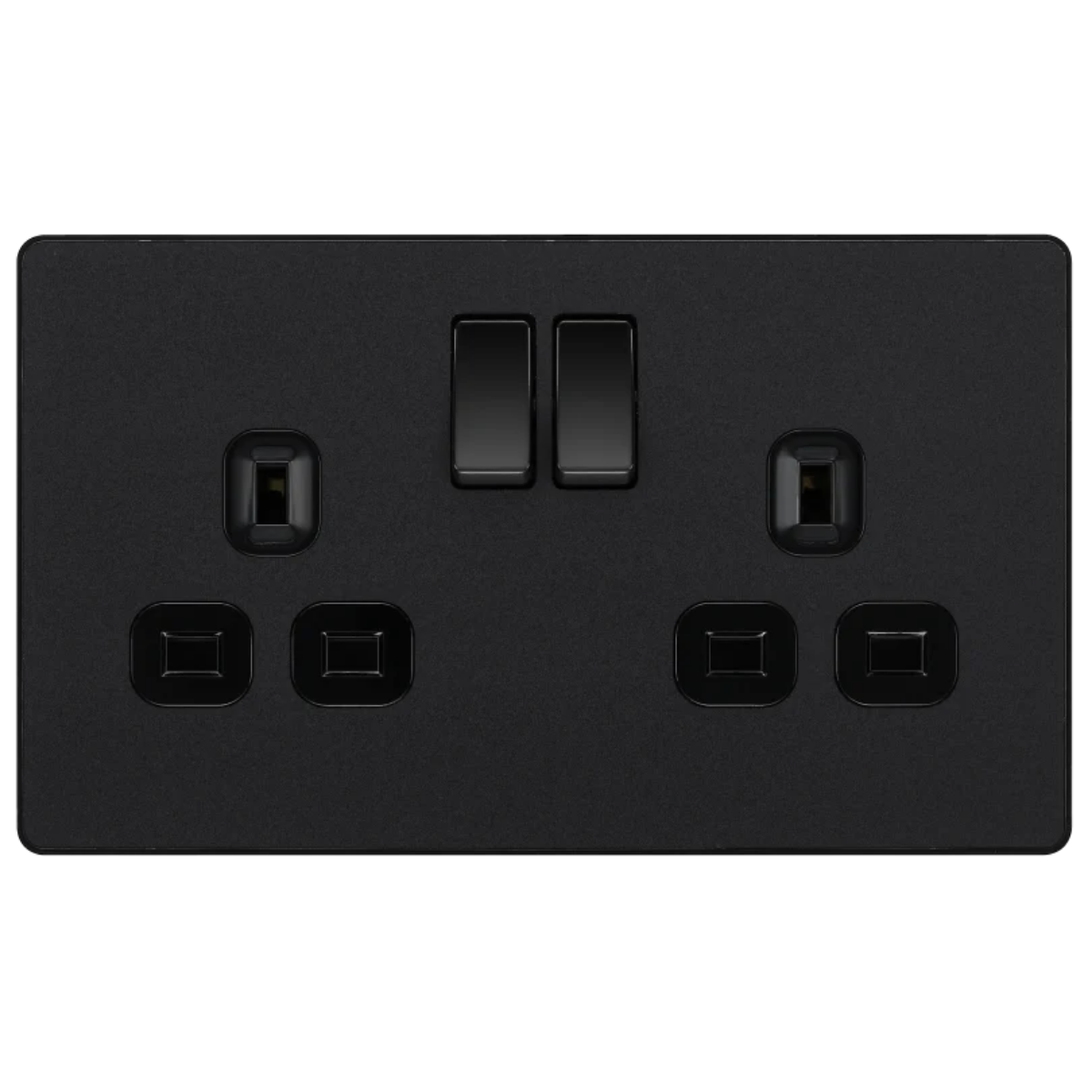 British General Evolve Matt Black 13A Double Switched Socket (PCDMB22B)