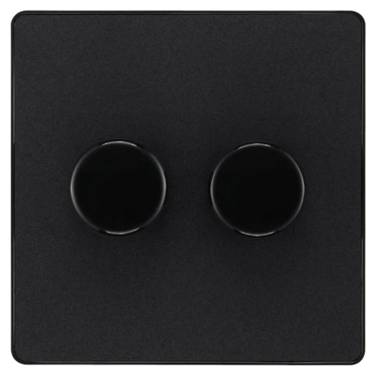 British General Evolve Matt Black 2 Gang 2 Way 400W Dimmer Switch (PCDMB82B)