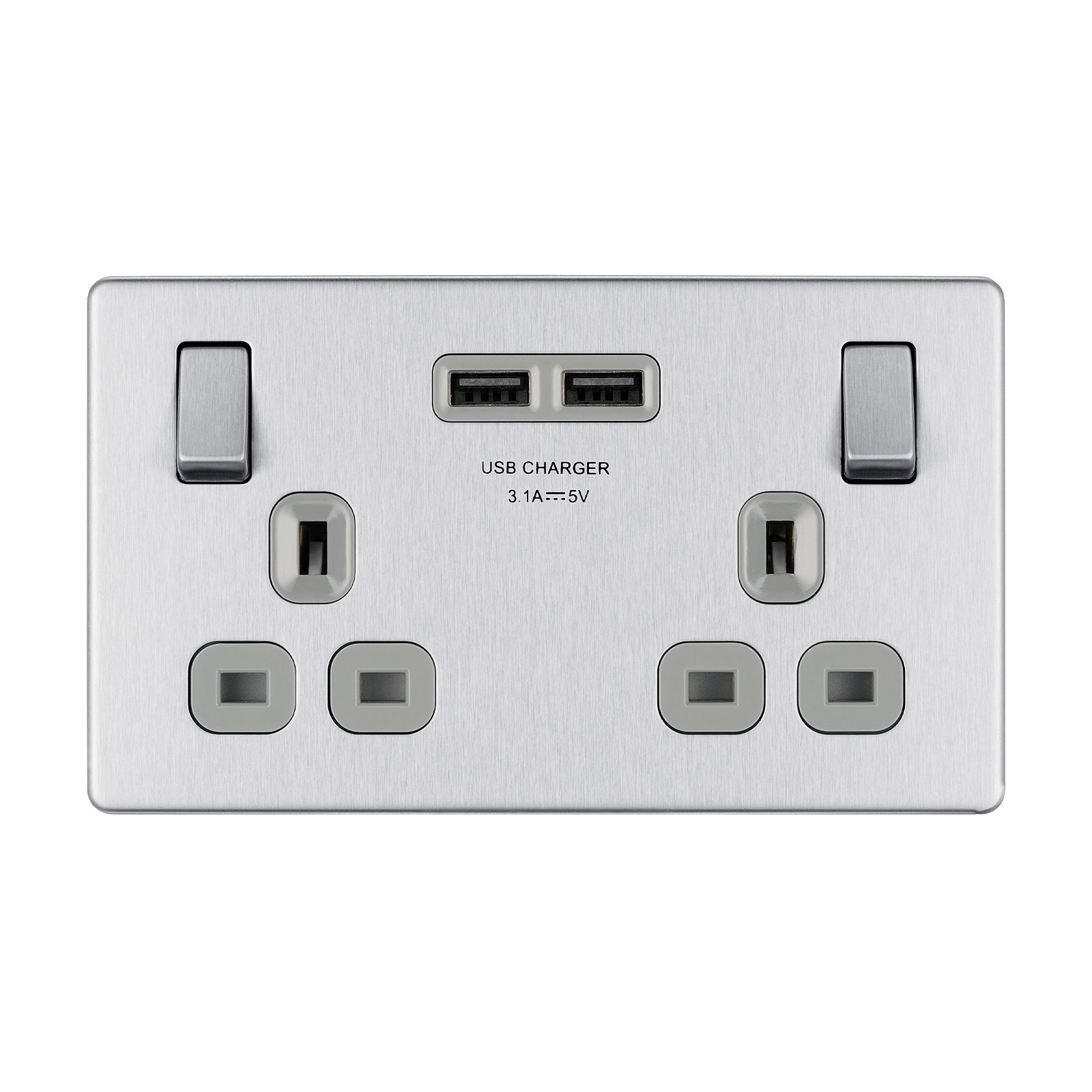 British General BG Flat plate Screwless 13A Double Socket with USB Charger (FBS22U3G)