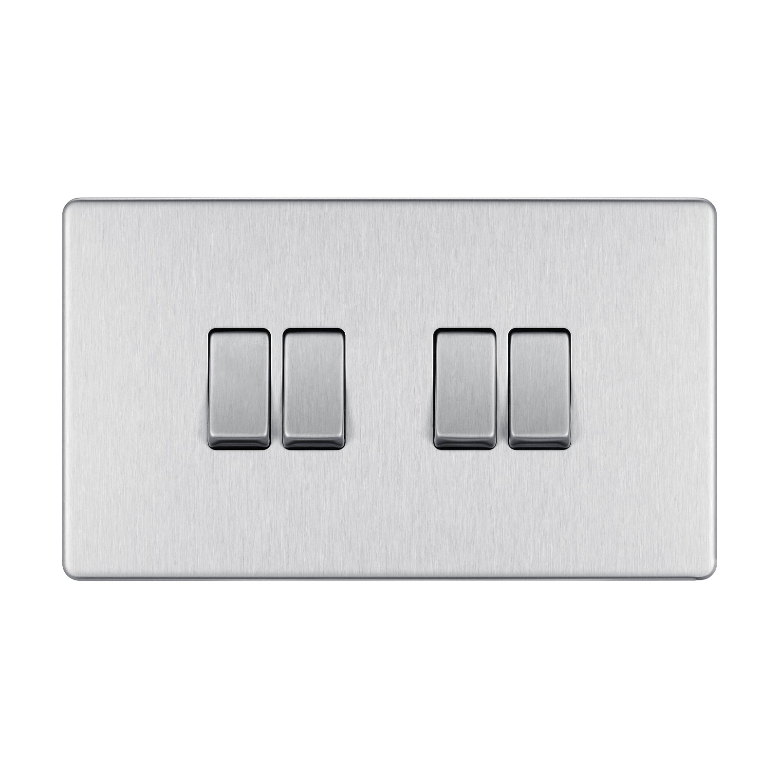 British General BG Flat plate Screwless Four Gang 2 Way Switch, Brushed Steel (FBS44)