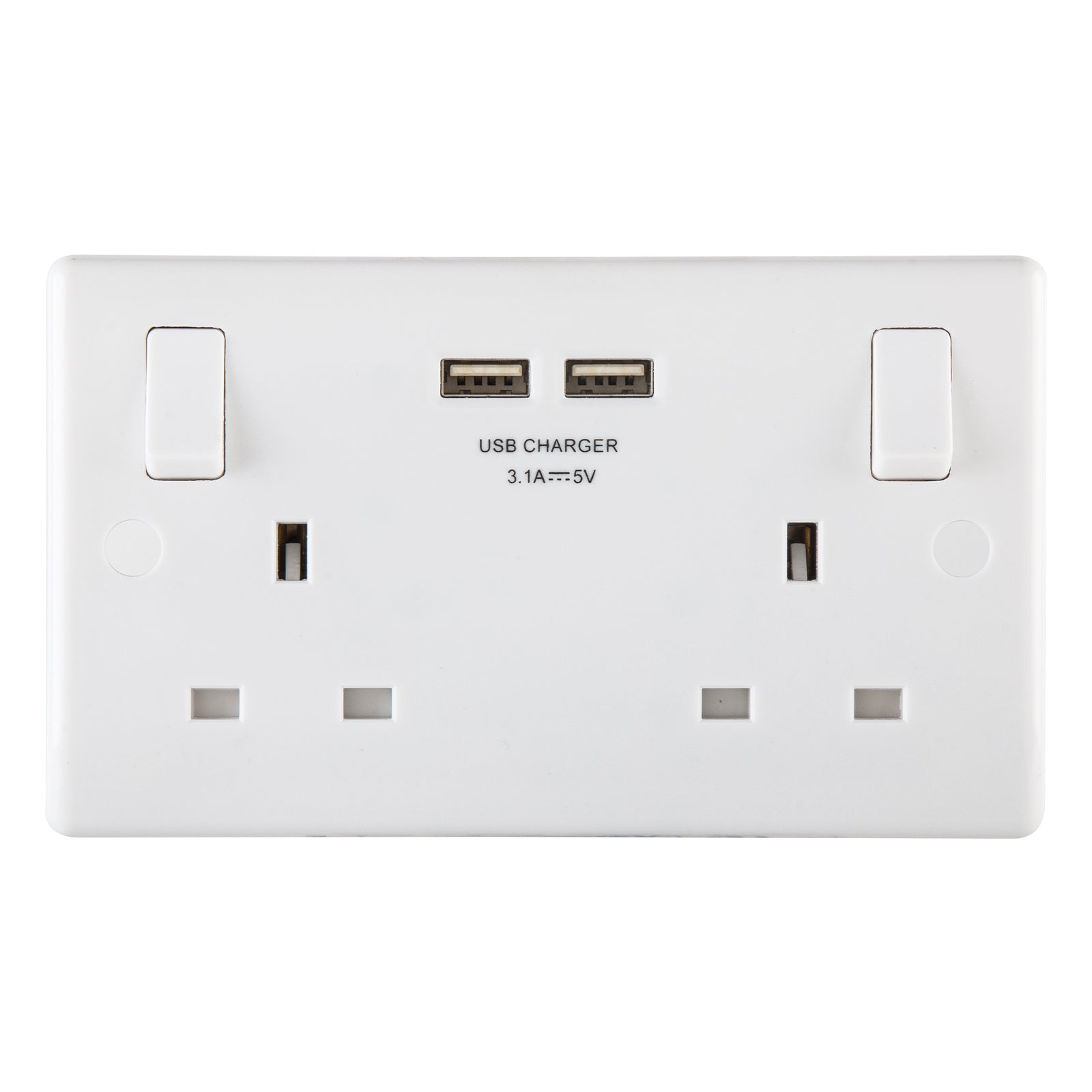 British General BG Moulded 13 Amp Power Double Socket with USB Charger, White (822U3)