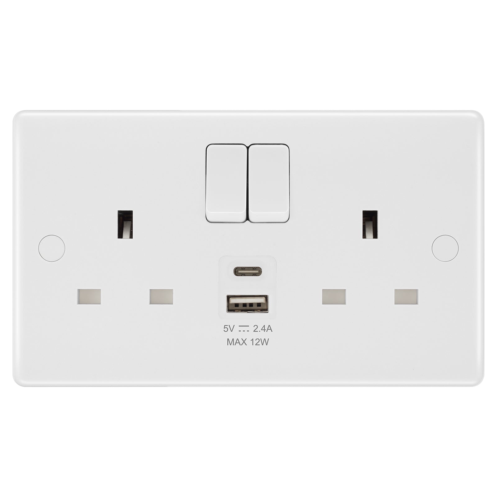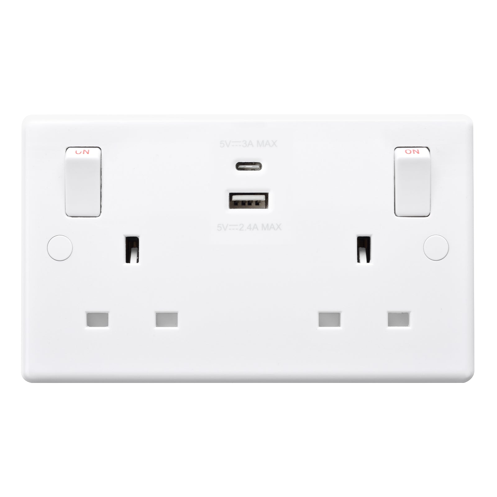 British General BG Moulded Double Gang Switched 13A Power Socket With 12W USB-C+A (822UAC12)