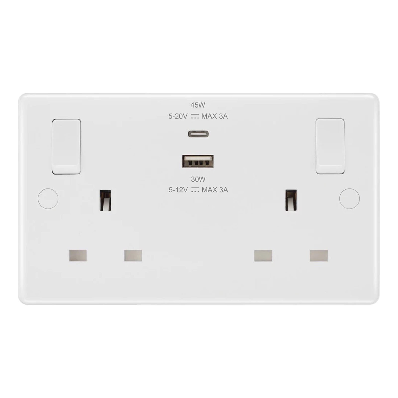 British General BG Moulded 13A Double Socket with 45W USB-A & USB-C Fast Charging (822UAC45)