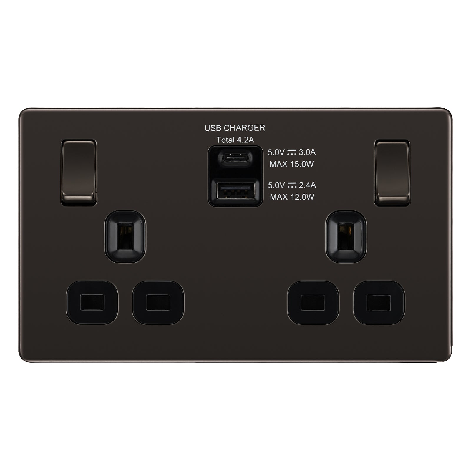 British General BG Flat Plate Double Gang USB Type-C Smart Charging Switched Socket (FBN22UACB)