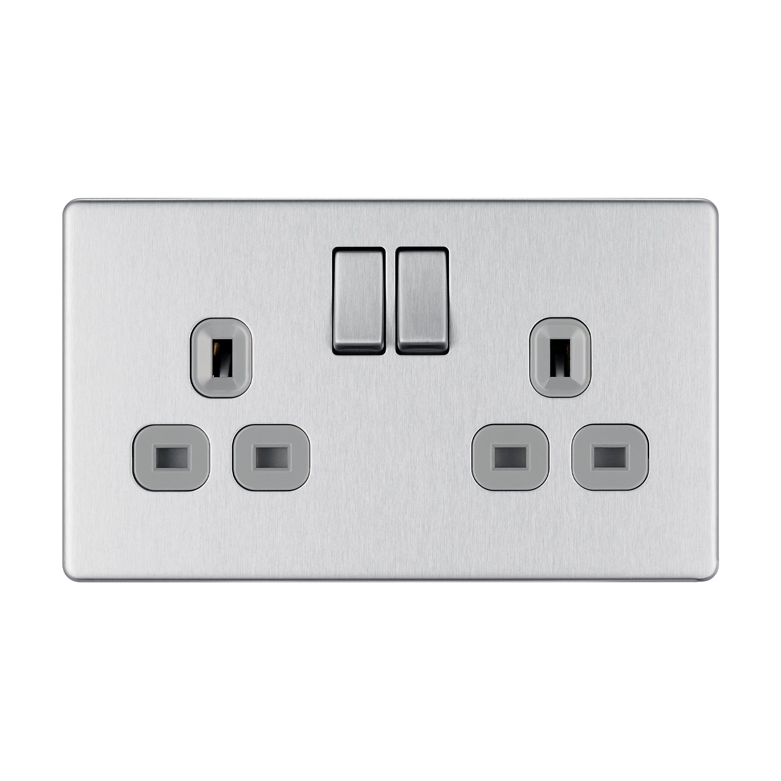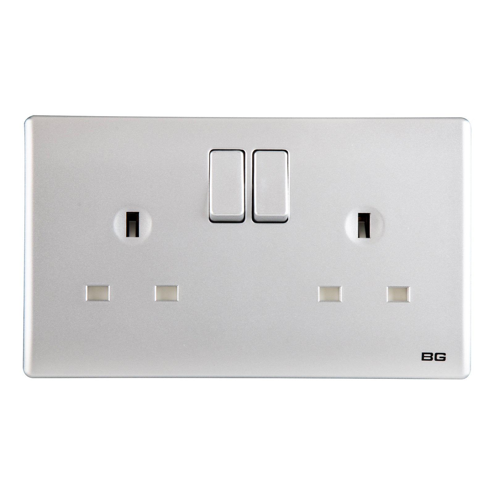British General BG Neo Slimline Double Gang Switched Socket, Silver (PCSL22)