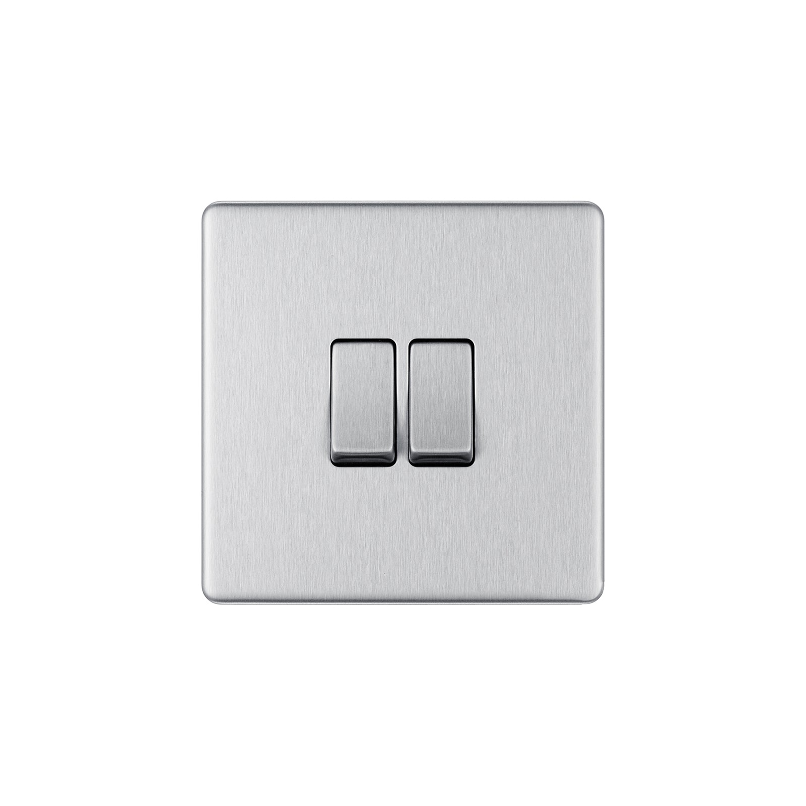 British General BG Flat plate Screwless 20A 16AX Double Gang 2-Way Light Switch – Brushed Steel (FBS42)