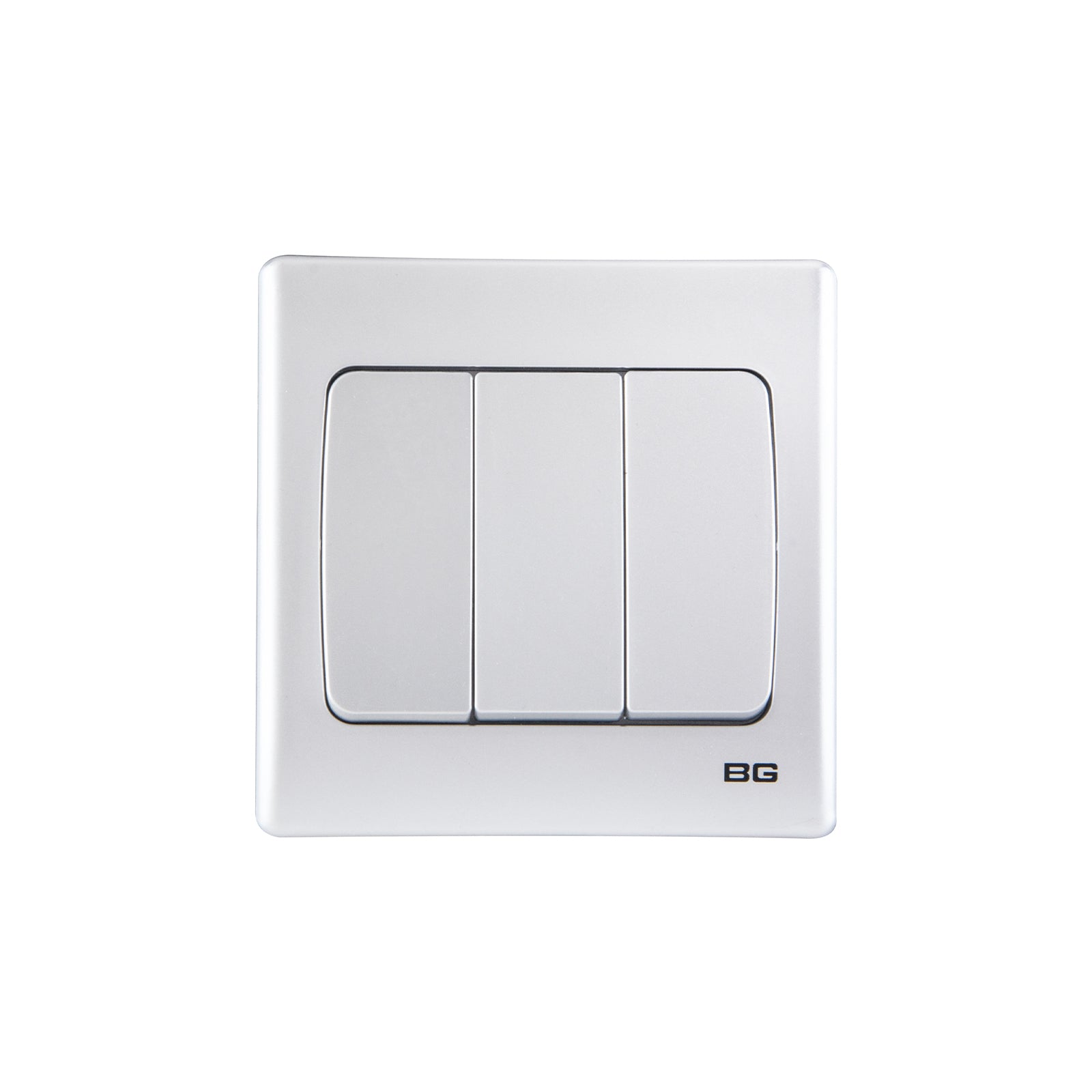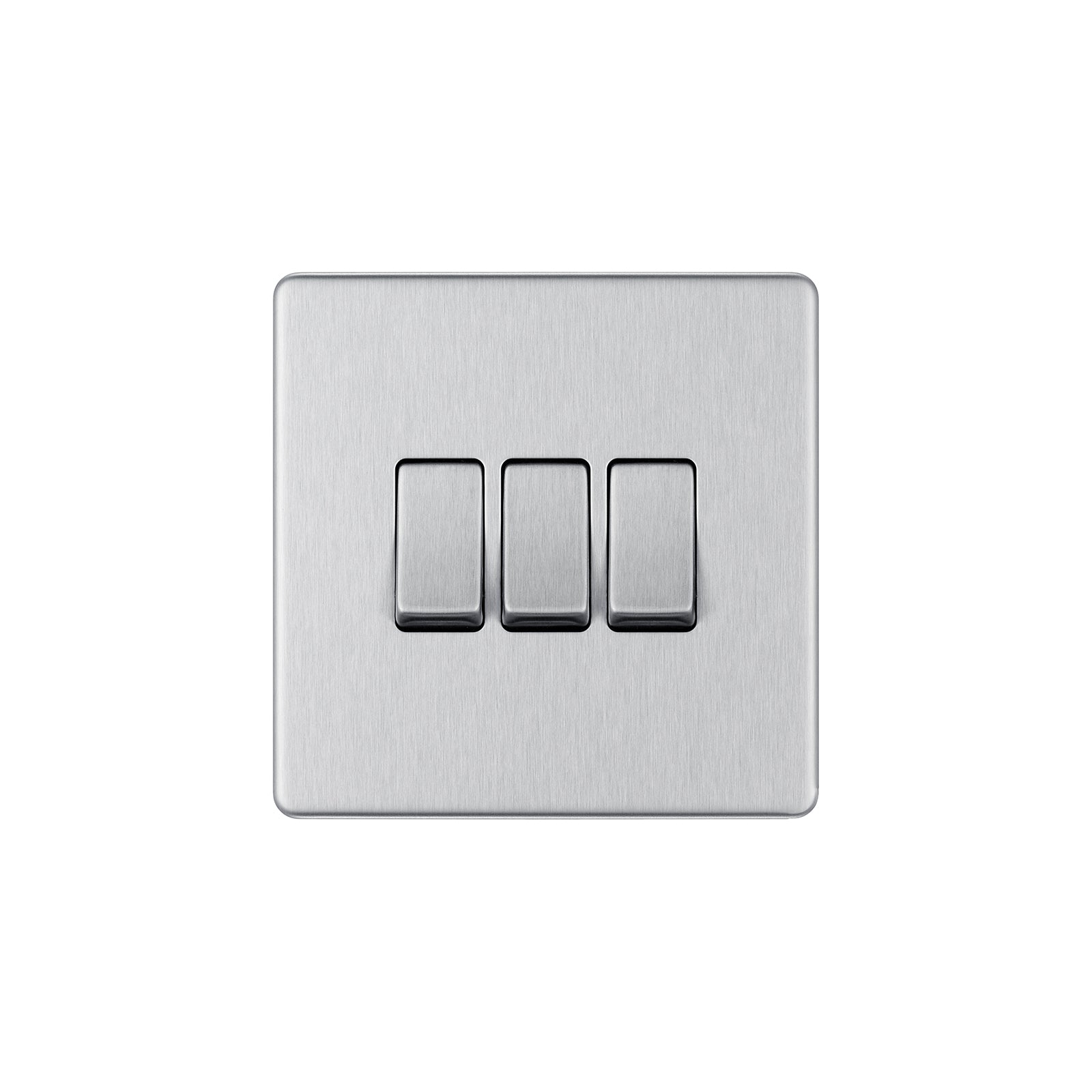 British General BG Flat Plate Screwless Triple Gang 2-Way Switch – Brushed Steel (FBS43)