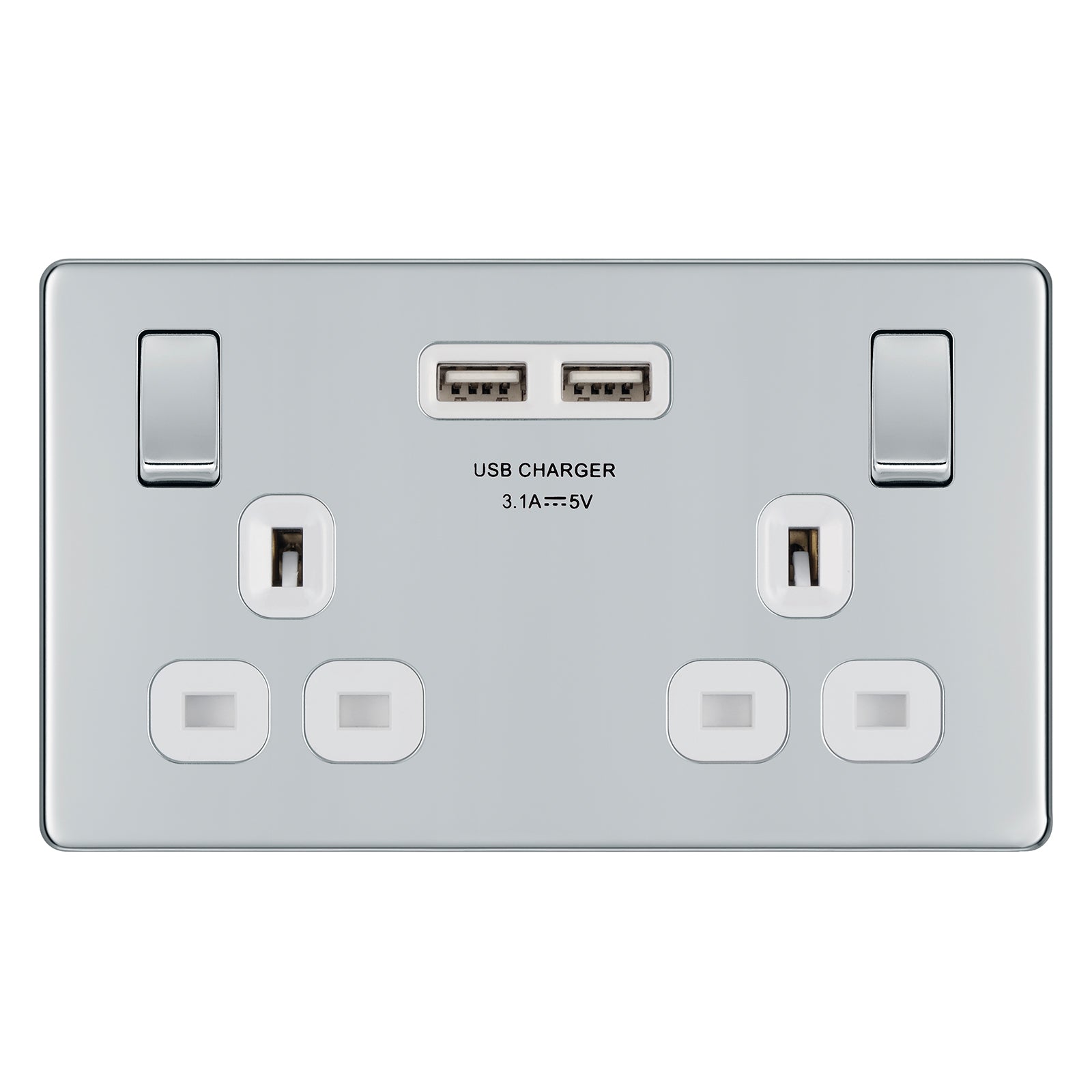 British General BG Flat plate Screwless Double Socket with USB Charger (FPC22U3W-01)