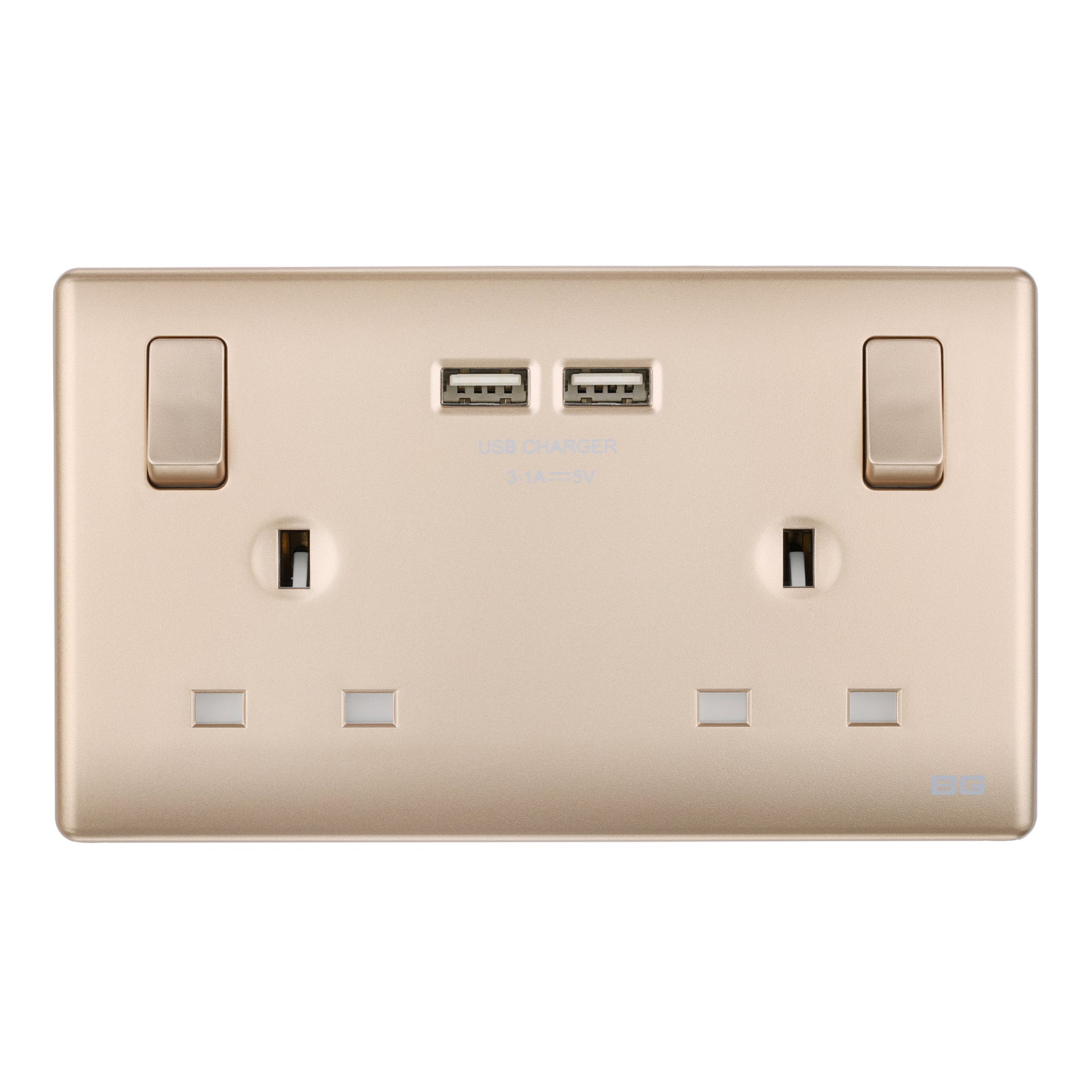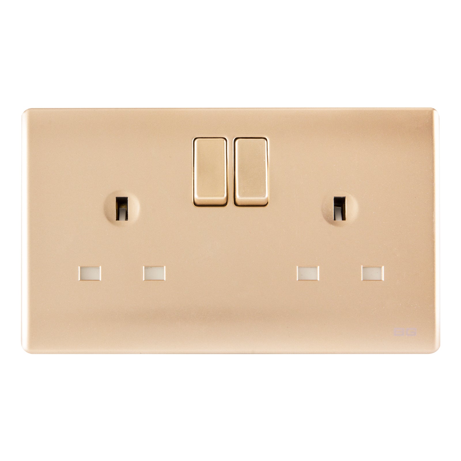 British General BG Neo Slimline Double Gang Switched Socket, Champagne (PCCH22)
