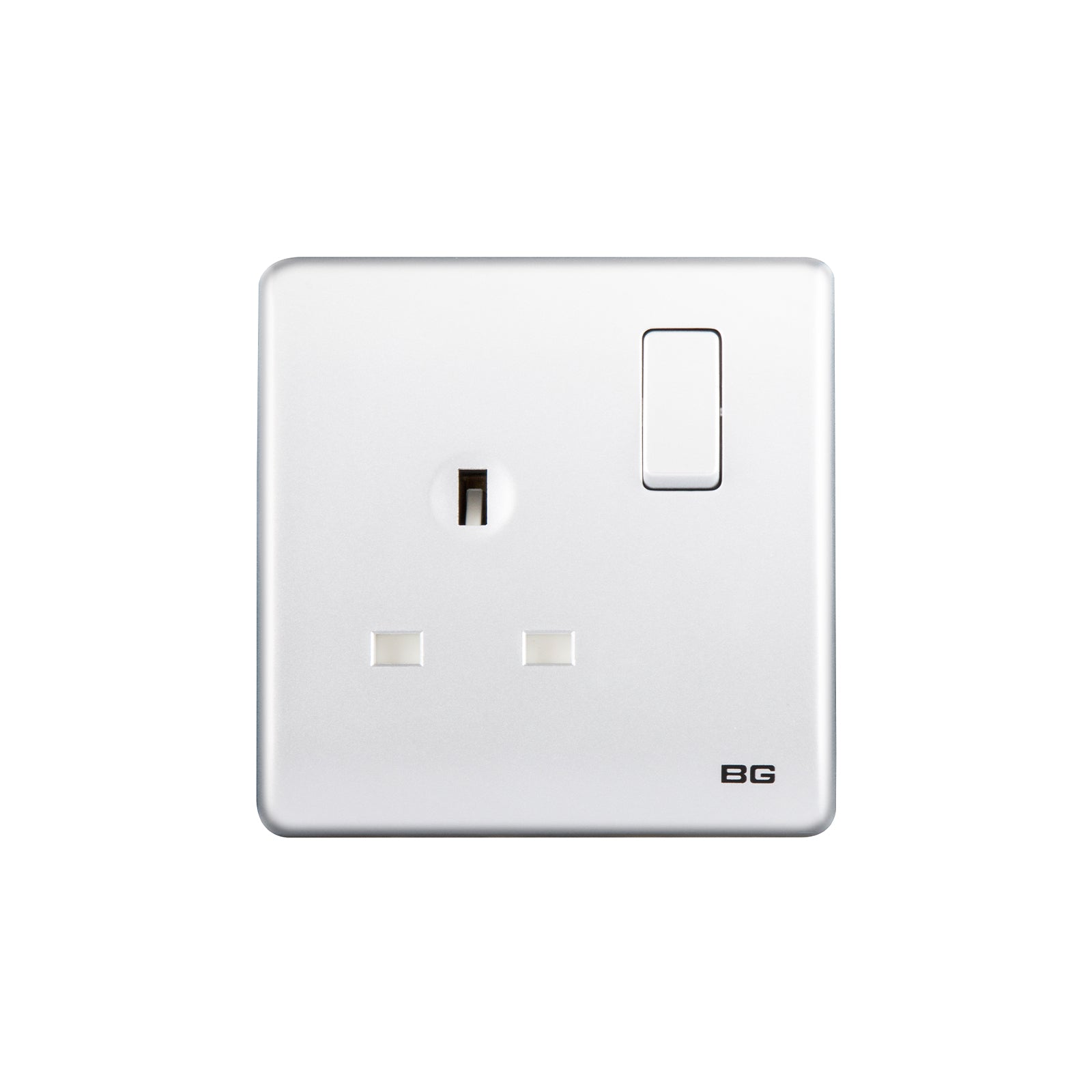 British General BG Neo Slimline Single Gang Switched Socket, Silver (PCSL21)
