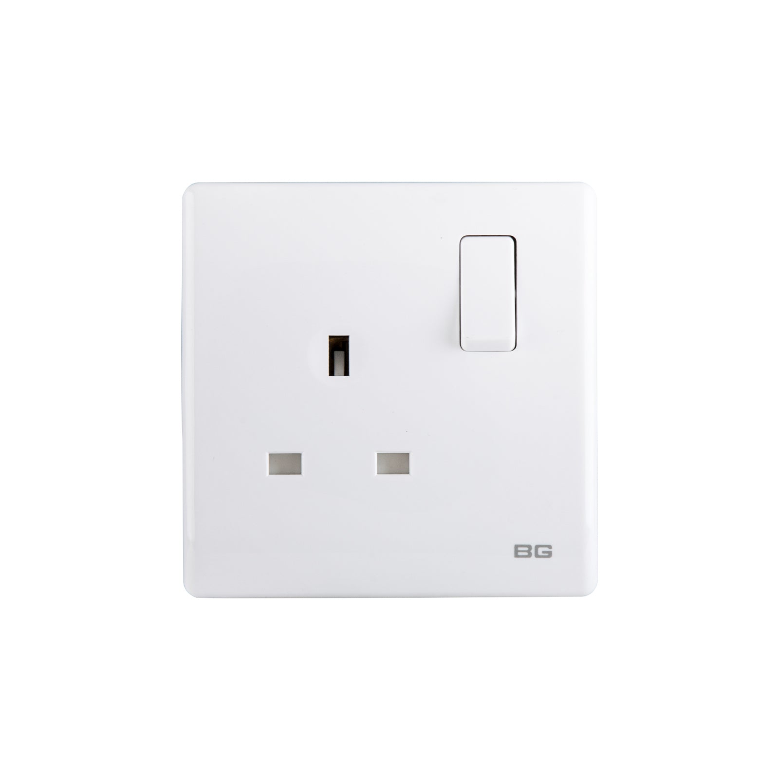 British General BG Flat plate Screwless Single Gang Switched Socket (FBS21G)