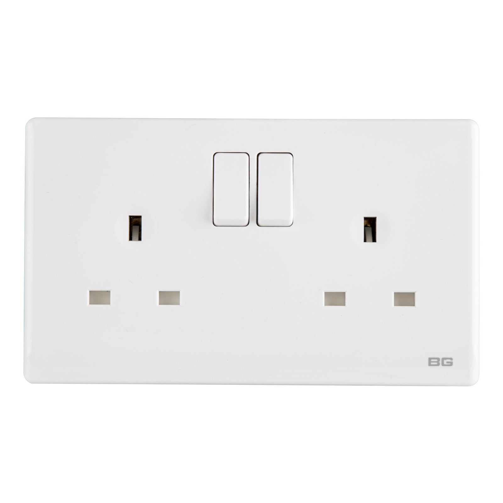 British General BG Flat plate Screwless 13A Double Switched Socket (FBS22G)