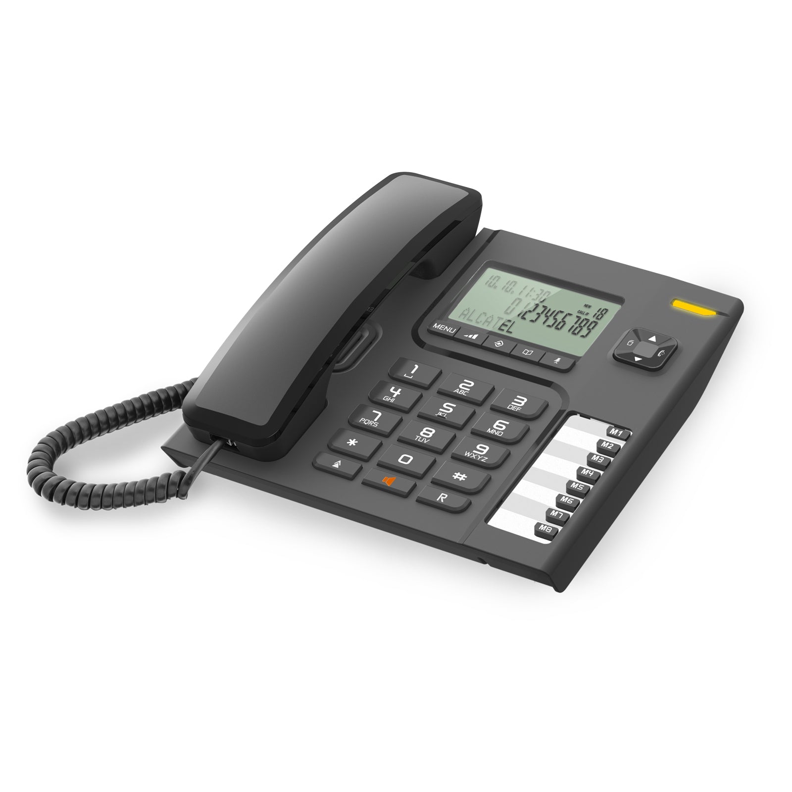 The Alcatel T76EX is a modern, feature-rich corded telephone designed for comfort, clarity, and simplicity. With its extra-large dot-matrix display, hands-free capability, and quick-dial memory functions, the T76EX is the perfect choice for both home and office use. Line-powered and easy to use, it delivers reliable communication with no need for batteries or external power.