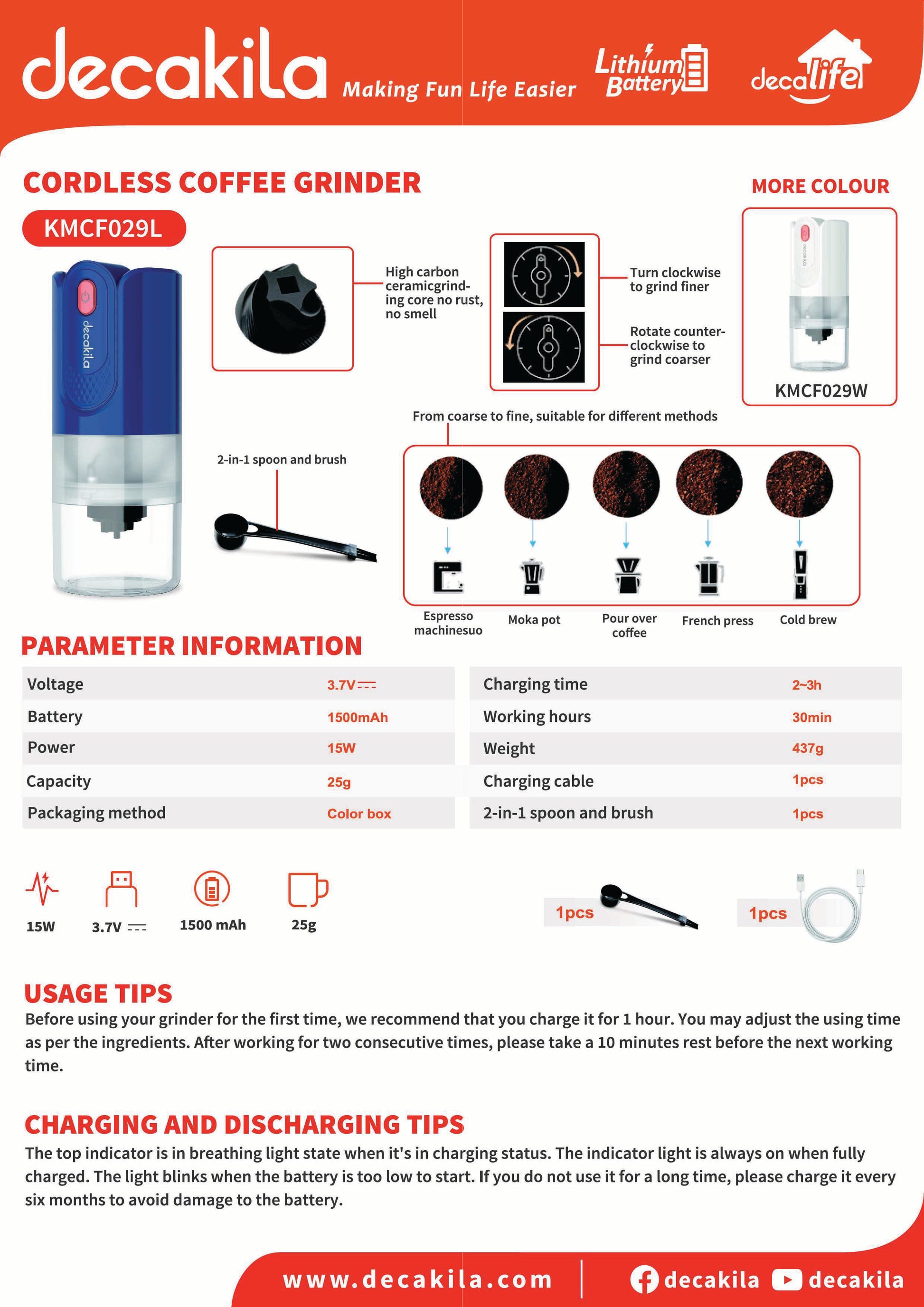 Decakila Cordless Coffee Grinder (KMCF029L/W)