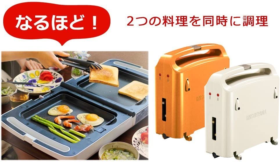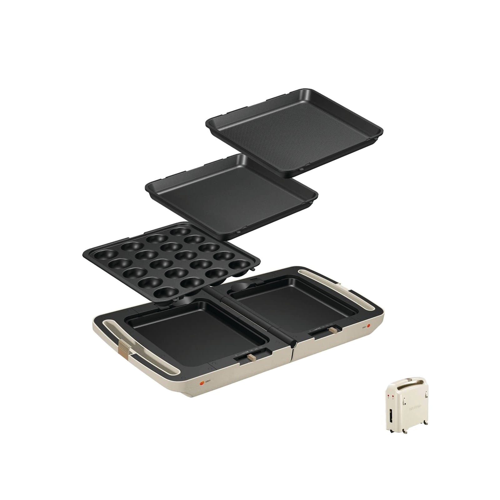 Iris Ohyama Double-Sided Foldable Electric Grill Plate, Takoyaki Hot Plate, Ivory (DPOL-301)