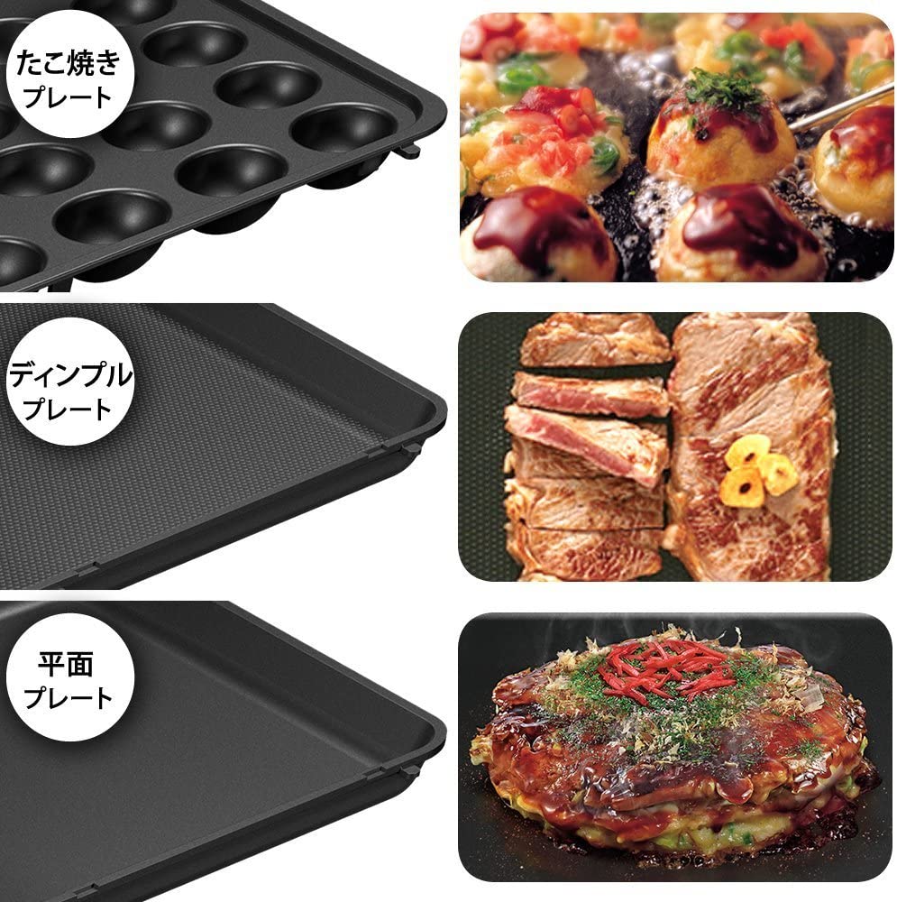 | Set Contents | Main Unit, Lid, Flat Plate, Dimple Plate, Takoyaki Plate |