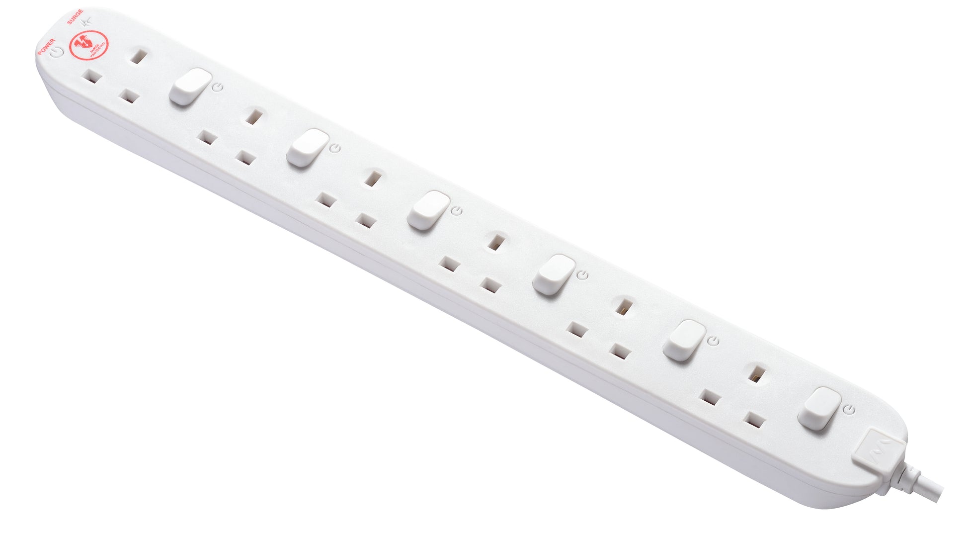 Masterplug Individually Switched Extension Lead 6 Sockets 2 meter Black/ White (SWSRG62N)