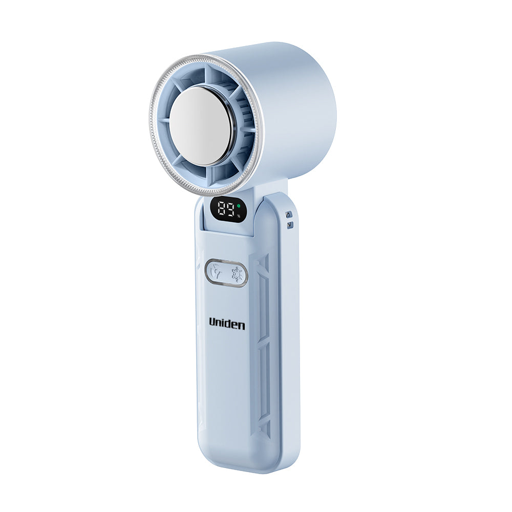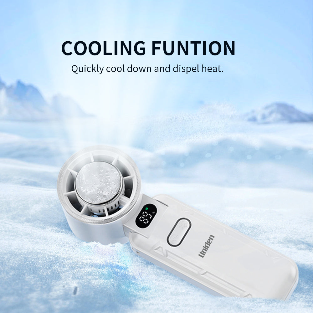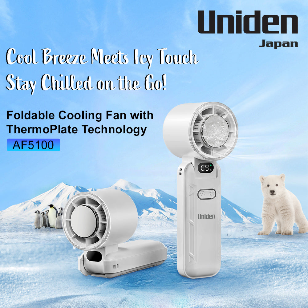Experience powerful cooling wherever you go with the Uniden AF5100 Foldable Cooling Fan. Designed with a magnetic semiconductor cold plate, 100-speed fan adjustment, and AI battery control, it delivers premium comfort in a compact, travel-ready design.